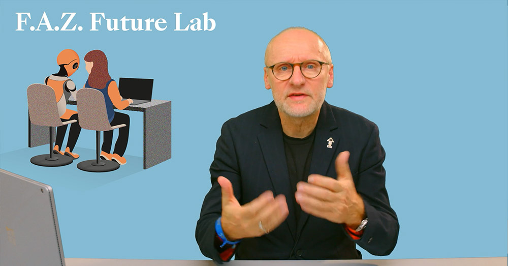 Im Rahmen des F.A.Z. Schulwettbewerbs „Hurra, die Schule prompt!“ haben Schülerinnen und Schüler aus 335 Klassen und insgesamt knapp 8.000 Teilnehmenden ihre kreativen Beiträge zu Potenzialen und den Herausforderungen Künstlicher Intelligenz in Medienunternehmen.